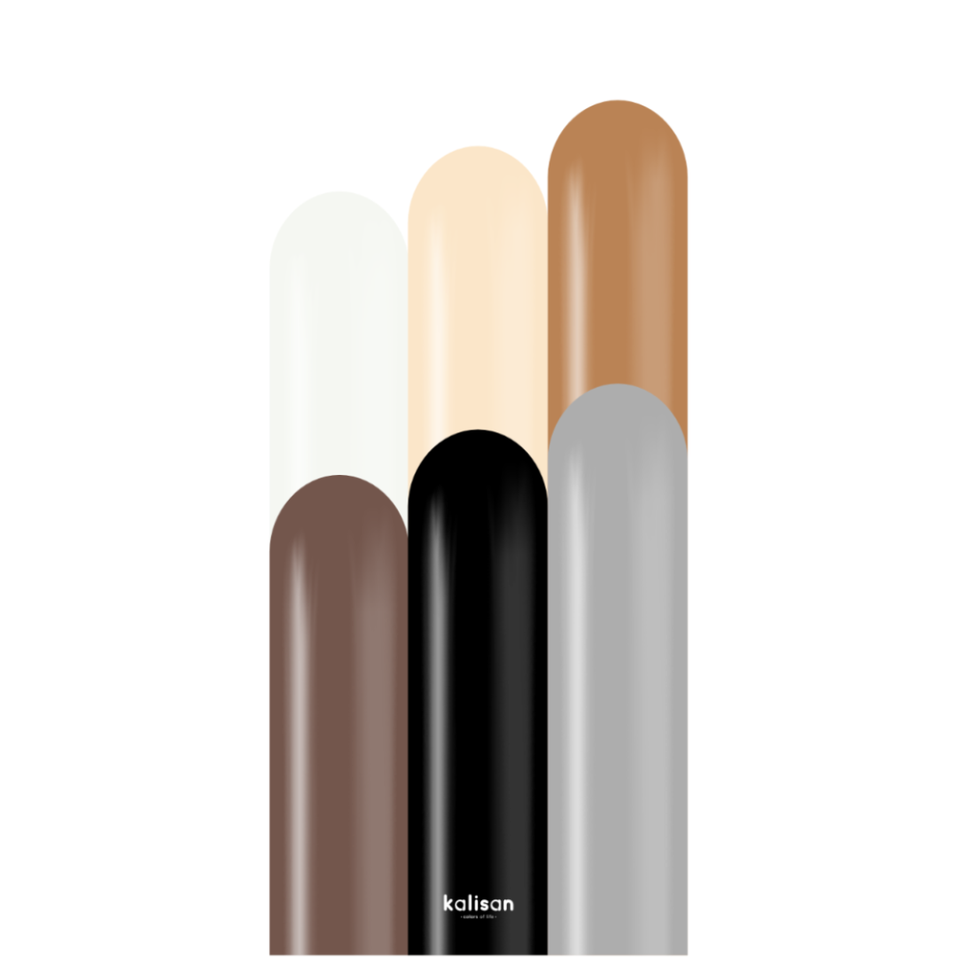 New 100 x twisty modeling balloons in classic 'character' assorted colours. Size of balloons is 260 - well known as the 'middle' size of balloon twisting, as well as the most popular and versatile size. Colours include grey, brown, light brown, white, black, and beige.